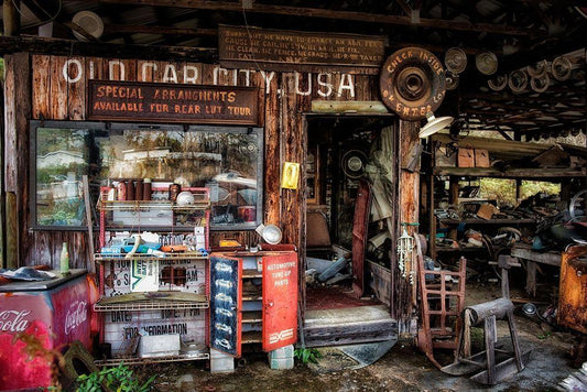 Junk For Sale White Modern Wood Framed Art Print with Double Matting by Head, Danny