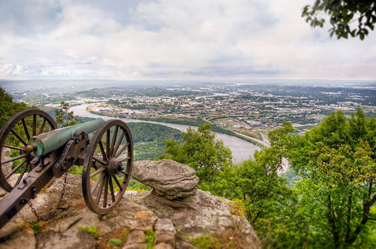 Chattanooga from North Bank of River 1894 White Modern Wood Framed Art Print with Double Matting by Lee, Rachel