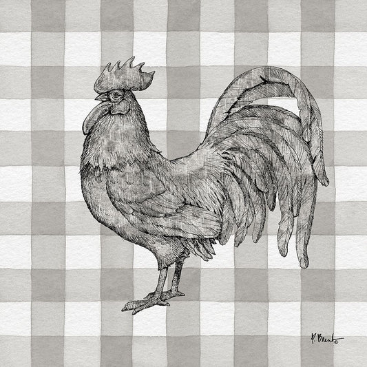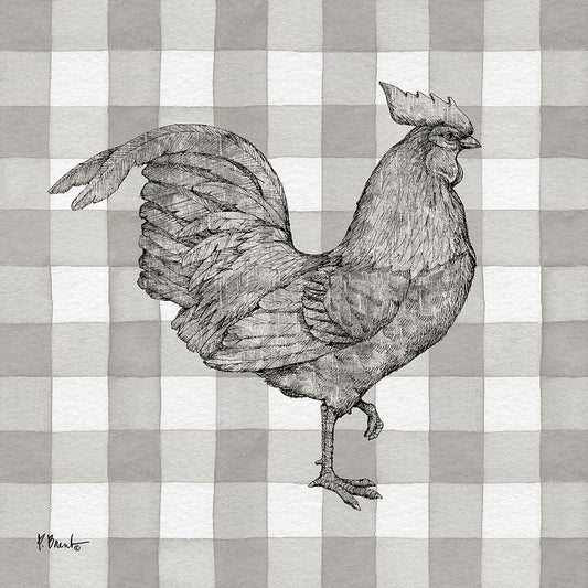 Lined Rooster I White Modern Wood Framed Art Print with Double Matting by Brent, Paul