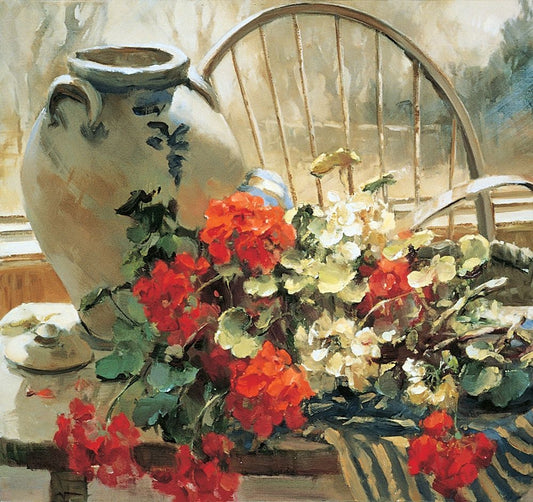 Chair Floral II Black Ornate Wood Framed Art Print with Double Matting by Unknown