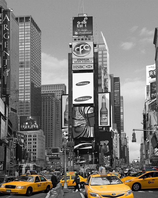Yellow Cabs, Times Square White Modern Wood Framed Art Print with Double Matting by Maloratsky, Igor