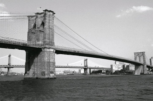 Brooklyn Bridge White Modern Wood Framed Art Print with Double Matting by Unknown