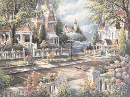 Victorian Street White Modern Wood Framed Art Print with Double Matting by Unknown
