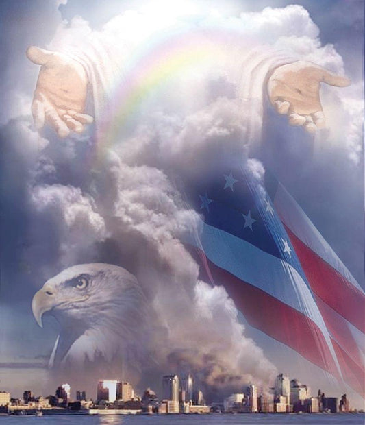 God Bless America White Modern Wood Framed Art Print with Double Matting by Unknown