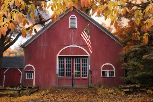 American Flag Barn White Modern Wood Framed Art Print with Double Matting by Rigsby, Jennifer