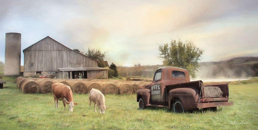 Happy Harvest Truck White Modern Wood Framed Art Print with Double Matting by Deiter, Lori