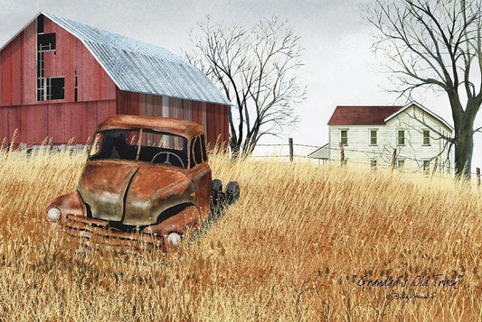 Granddads Ole Truck White Modern Wood Framed Art Print with Double Matting by Jacobs, Billy