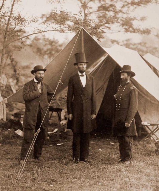 President Lincoln on the Battlefield of Antietam, Maryland, October 2, 1862 White Modern Wood Framed Art Print with Double Matting by Gardner, Alexander
