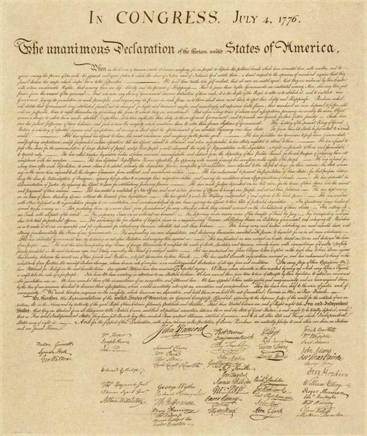 U.S. Declaration of Independence - Decorative Sepia White Modern Wood Framed Art Print with Double Matting by US Government
