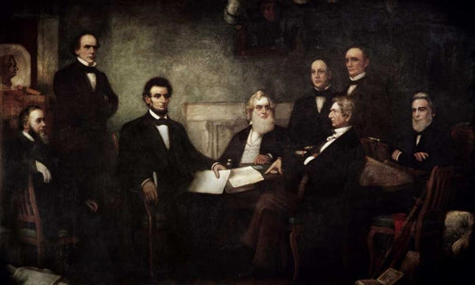 The First Reading of the Emancipation Proclamation White Modern Wood Framed Art Print with Double Matting by Carpenter, Francis Bicknell