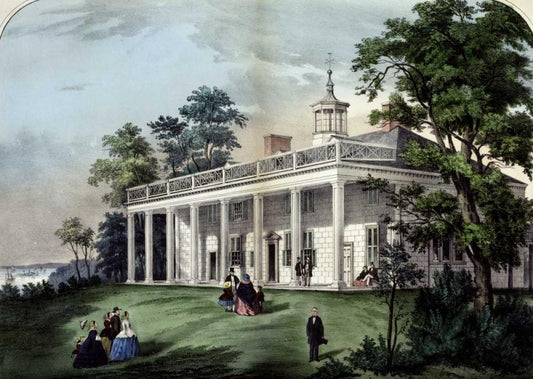 Home of Washington White Modern Wood Framed Art Print with Double Matting by Currier and Ives