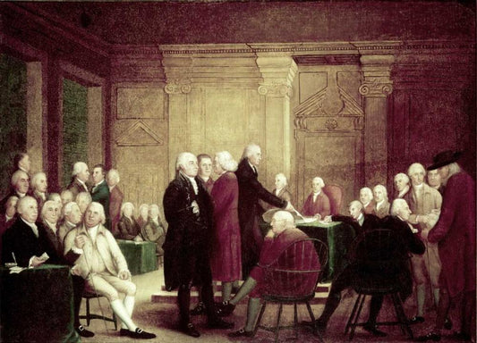 Congress Voting Independence, c. 1784 - 1788 White Modern Wood Framed Art Print with Double Matting by Pine, Robert