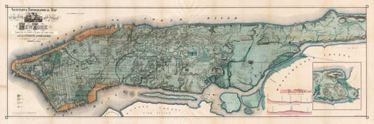 Map of Manhattan Island, 1865 White Modern Wood Framed Art Print with Double Matting by Anonymous