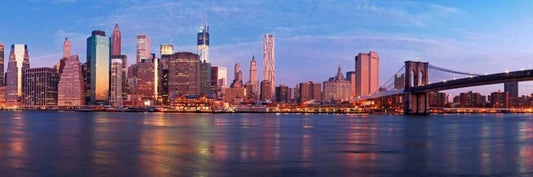 Manhattan and Brooklyn Bridge, NYC White Modern Wood Framed Art Print with Double Matting by Ratsenskiy, Vadim