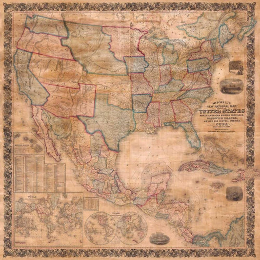 Map of the United States and North America, 1856 White Modern Wood Framed Art Print with Double Matting by Anonymous