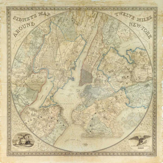 Twelve Miles around NY Map, 1849 White Modern Wood Framed Art Print with Double Matting by Anonymous