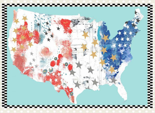 America Blue Red Stars White Modern Wood Framed Art Print with Double Matting by Moss, Tara