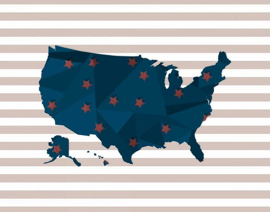 America Blue Red Stripes White Modern Wood Framed Art Print with Double Matting by Moss, Tara