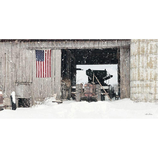Winter at Patriotic Barn Gold Ornate Wood Framed Art Print with Double Matting by Deiter, Lori
