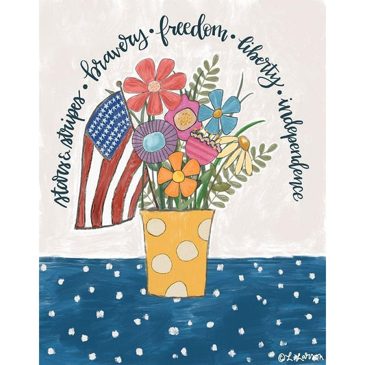 Patriotic Flower Pot Gold Ornate Wood Framed Art Print with Double Matting by Larson, Lisa