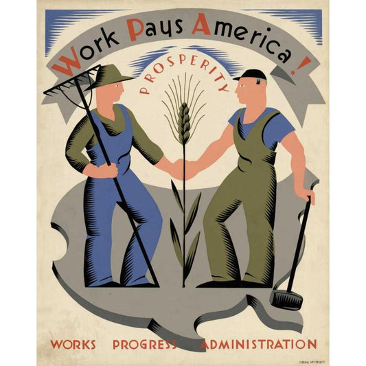 Work pays America! Prosperity. Gold Ornate Wood Framed Art Print with Double Matting by Bock, Vera