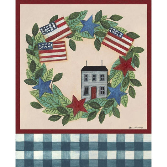 Patriotic Saltbox House Wreath Gold Ornate Wood Framed Art Print with Double Matting by Deming, Bernadette