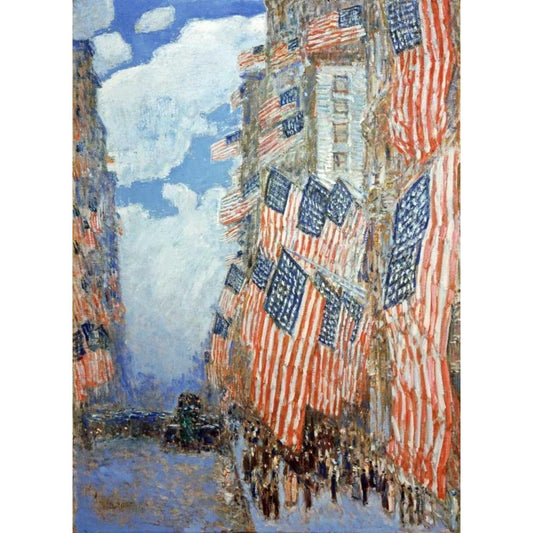 Fourth of July Gold Ornate Wood Framed Art Print with Double Matting by Hassam, Frederick Childe