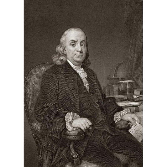 Benjamin Franklin Gold Ornate Wood Framed Art Print with Double Matting by Unknown