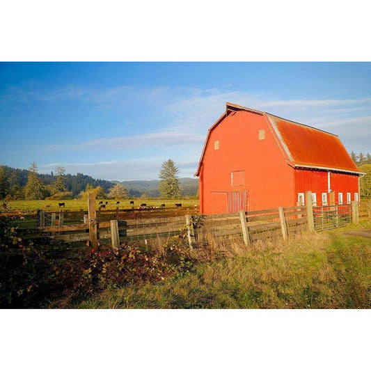 Red Barn With Cows Gold Ornate Wood Framed Art Print with Double Matting by Vizvary, Susan