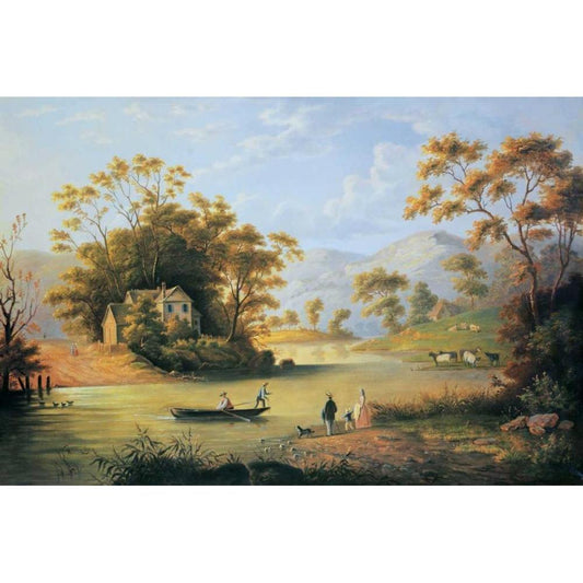 Boating On The Hudson Gold Ornate Wood Framed Art Print with Double Matting by Audubon, John Woodhouse