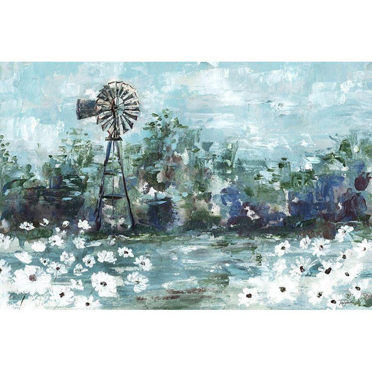 Windmill and Daisies Landscape Gold Ornate Wood Framed Art Print with Double Matting by Tre Sorelle Studios