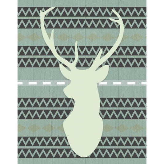 Green Tribal Deer Head Gold Ornate Wood Framed Art Print with Double Matting by Moss, Tara