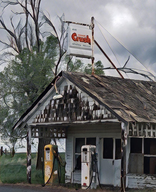 The Old Gas Station White Modern Wood Framed Art Print with Double Matting by McFerrin, Larry