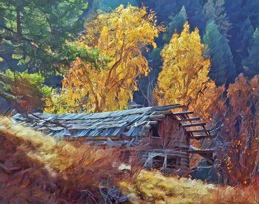 North Fork Cabin White Modern Wood Framed Art Print with Double Matting by McFerrin, Larry