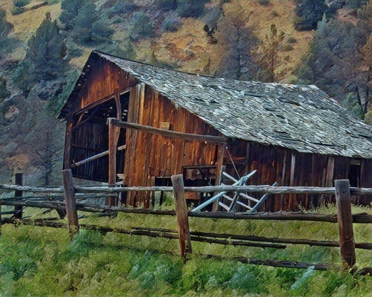 Old Barn and Corral White Modern Wood Framed Art Print with Double Matting by McFerrin, Larry