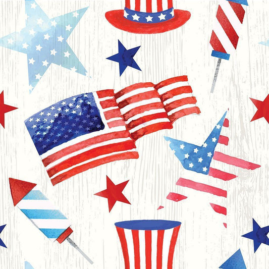 Happy 4th of July White Modern Wood Framed Art Print with Double Matting by ND Art