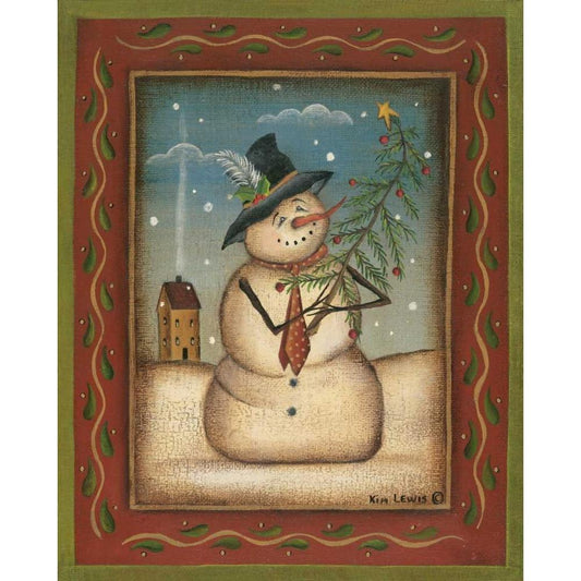 Snowman II Gold Ornate Wood Framed Art Print with Double Matting by Lewis, Kim