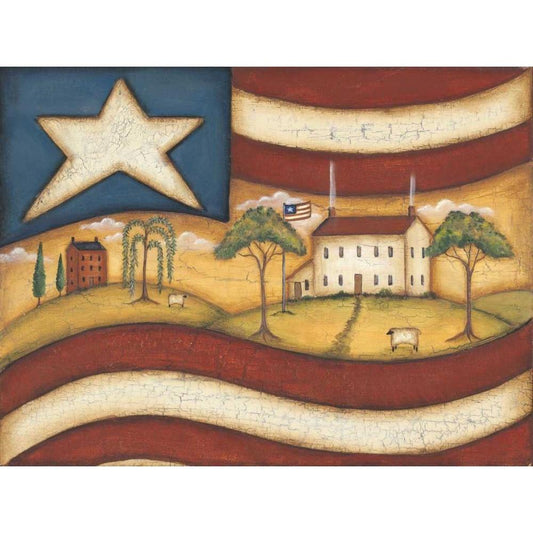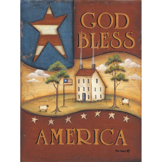 God Bless America Gold Ornate Wood Framed Art Print with Double Matting by Lewis, Kim
