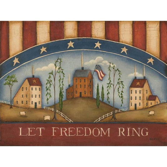 Let Freedom Ring Gold Ornate Wood Framed Art Print with Double Matting by Lewis, Kim