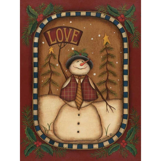 Love Snowman Gold Ornate Wood Framed Art Print with Double Matting by Lewis, Kim