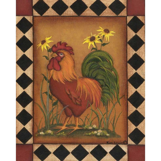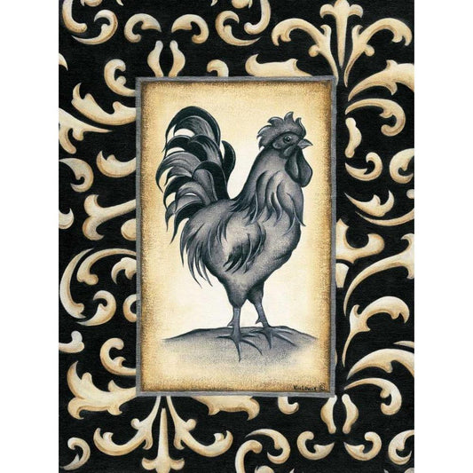 Black Rooster Gold Ornate Wood Framed Art Print with Double Matting by Lewis, Kim
