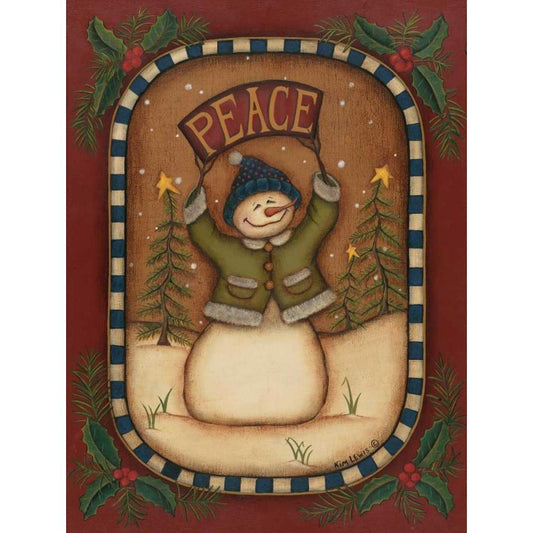 Peace Snowman Gold Ornate Wood Framed Art Print with Double Matting by Lewis, Kim