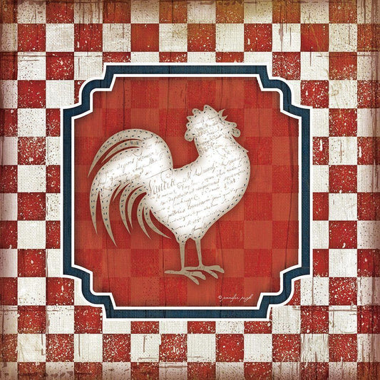 Red White and Blue Rooster XI Gold Ornate Wood Framed Art Print with Double Matting by Pugh, Jennifer