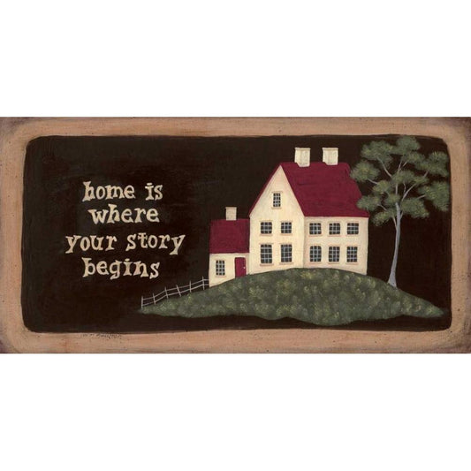 Home is Where Stories Begin Gold Ornate Wood Framed Art Print with Double Matting by Moulton, Jo