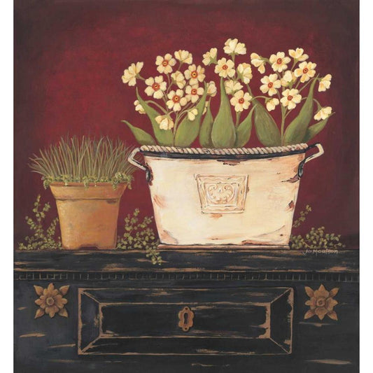 Floral with Black Bucket Gold Ornate Wood Framed Art Print with Double Matting by Moulton, Jo