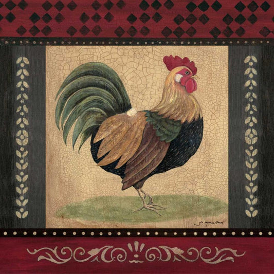 Rooster Gold Ornate Wood Framed Art Print with Double Matting by Moulton, Jo