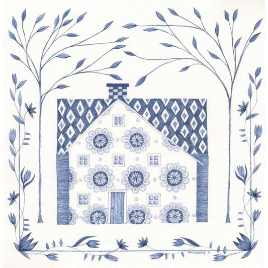 Blue House Gold Ornate Wood Framed Art Print with Double Matting by Shamp, Cindy
