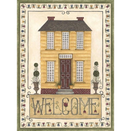 Yellow House Welcome Gold Ornate Wood Framed Art Print with Double Matting by Shamp, Cindy