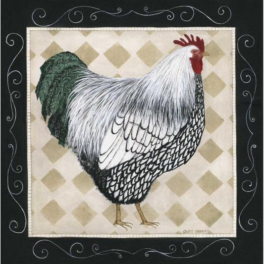 BandW Rooster Gold Ornate Wood Framed Art Print with Double Matting by Shamp, Cindy