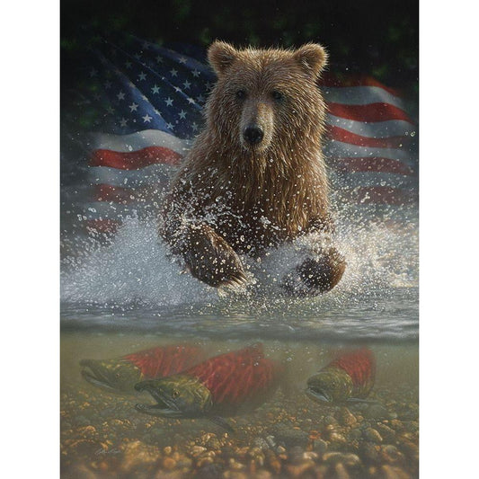 Brown Bear Fishing America Gold Ornate Wood Framed Art Print with Double Matting by Bogle, Collin